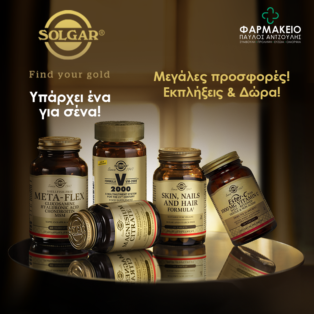 Ανακαλύψτε τη φιλοσοφία της Solgar τη δύναμη της φύσης, της επιστήμης και της ισορροπίας. Σας περιμένουμε στο Φαρμακείο Παύλος Αντζουλής για ενημέρωση και φροντίδα με τα συμπληρώματα Solgar.