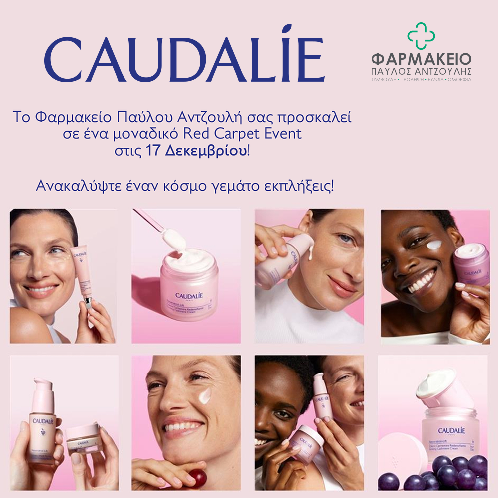 Το Φαρμακείο Παύλου Αντζουλή σας προσκαλεί σε ένα μοναδικό Red Carpet Event Caudalie, αποκλειστικά την Τετάρτη 17 Δεκεμβρίου!