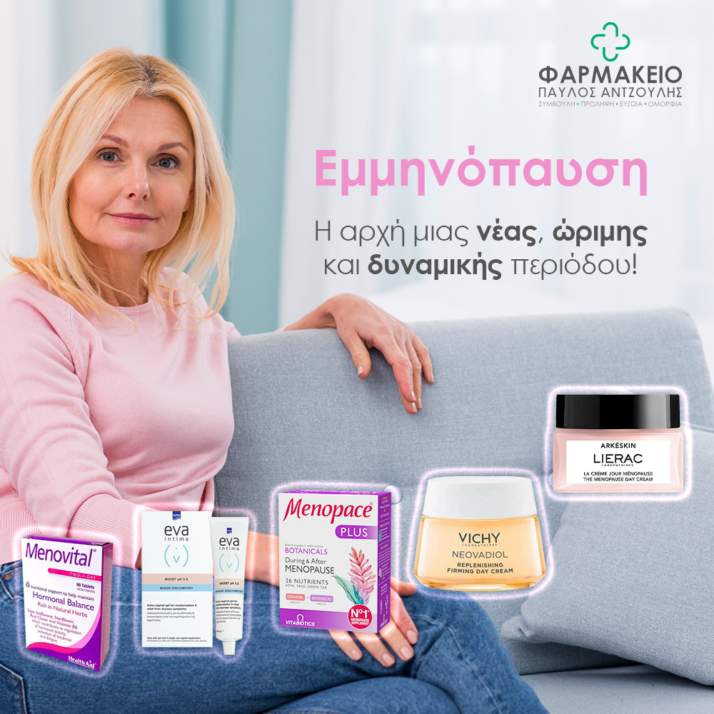 Το ενημερωμένο προσωπικό του Φαρμακείου Παύλος Αντζουλής σας περιμένει το Σάββατο 18 Οκτωβρίου για να ενημερωθείτε για την εμμηνόπαυση, τις ανάγκες του οργανισμού και τις εξειδικευμένες λύσεις φροντίδας!