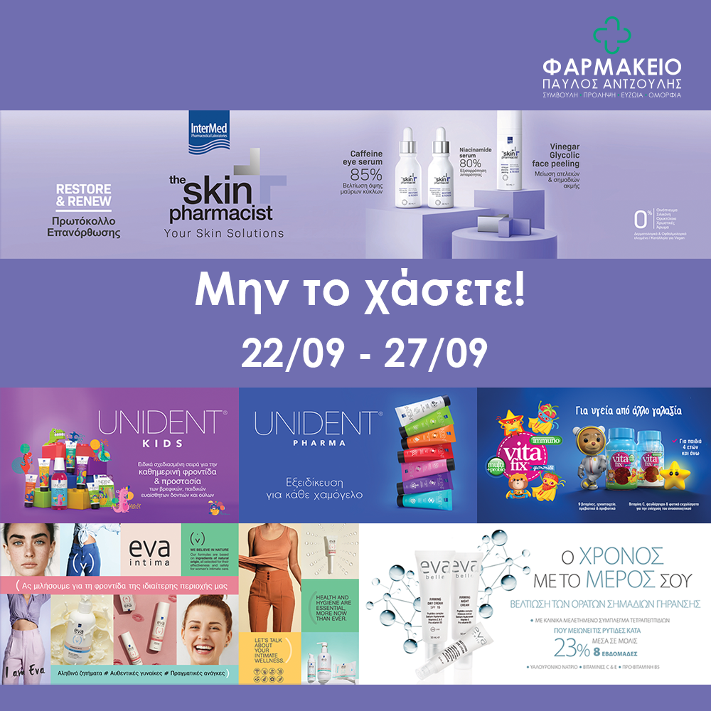 Βρείτε όλα τα αγαπημένα σας προϊόντα Intermed με έκπτωση, και ζητήστε την συμβουλή της αισθητικού της Intermed που θα βρίσκεται στον χώρο μας για ό,τι χρειαστείτε!