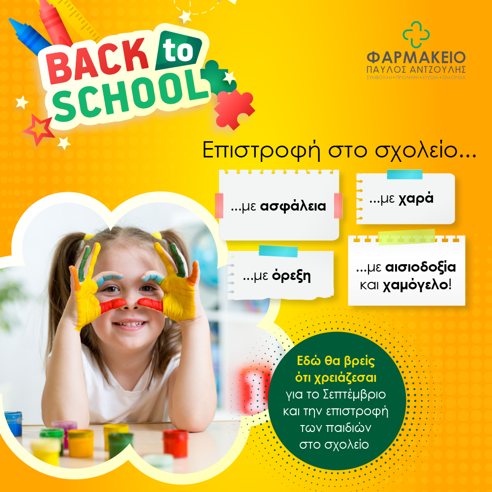 Στο Φαρμακείο Παύλος Αντζουλής θα βρείτε ό,τι χρειάζεστε για την επιστροφή των παιδιών σας στο σχολείο: